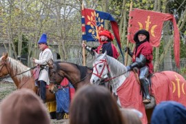 W obrębie parafii pw. Podwyższenia Krzyża Świętego na uczestników czekała starodawna osada. W licznych namiotach prezentowano zbroje, hełmy, tarcze oraz miecze, a także narzędzia i przedmioty codziennego użytku sprzed wieków. Wiedzę na ich temat przekazywali pasjonaci z grupy rekonstrukcyjnej Gdańska Rota Mieszczańska. Warsztatom towarzyszyła muzyka dawna grana na żywo przez członków rumskiego zespołu „Góra Trolla”. Równocześnie chętni mogli zwiedzić z przewodnikiem zabytkowe ruiny oraz wnętrza kościoła pw. Podwyższenia Krzyża Świętego.