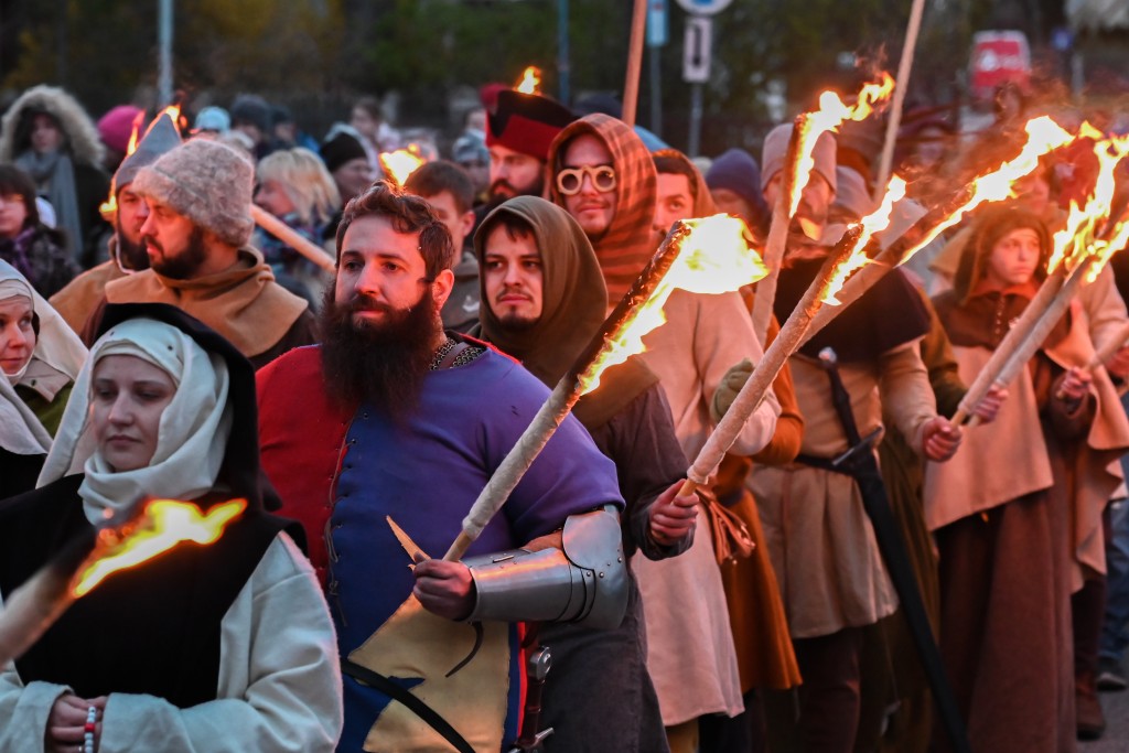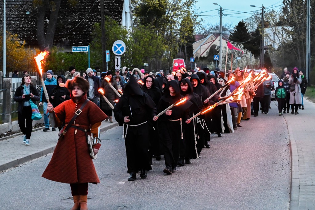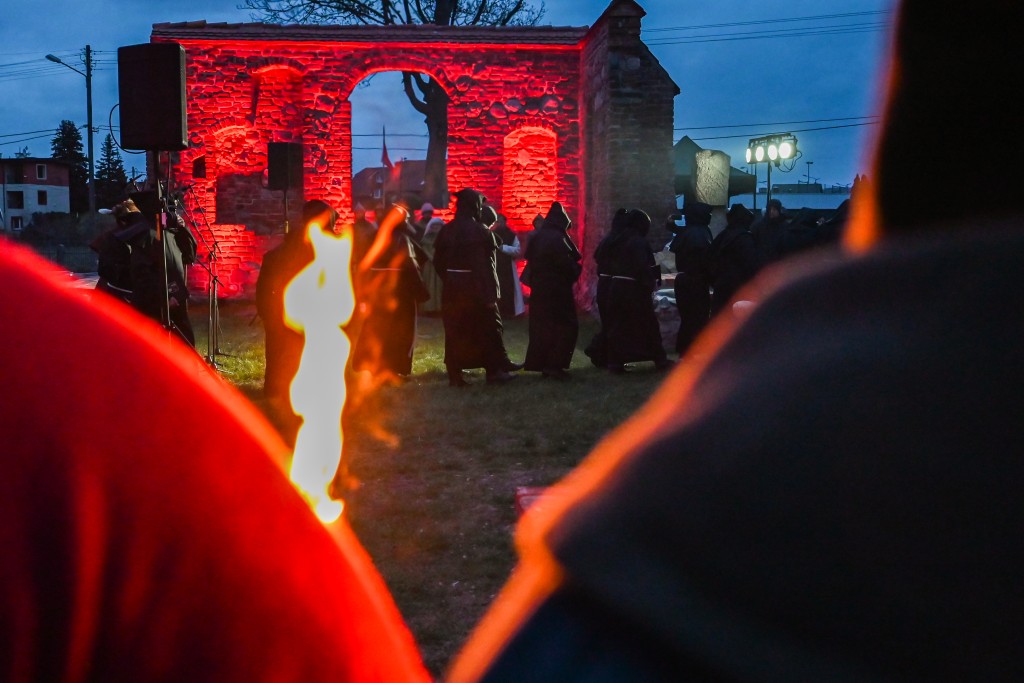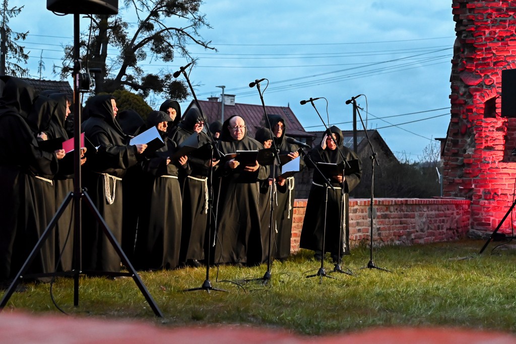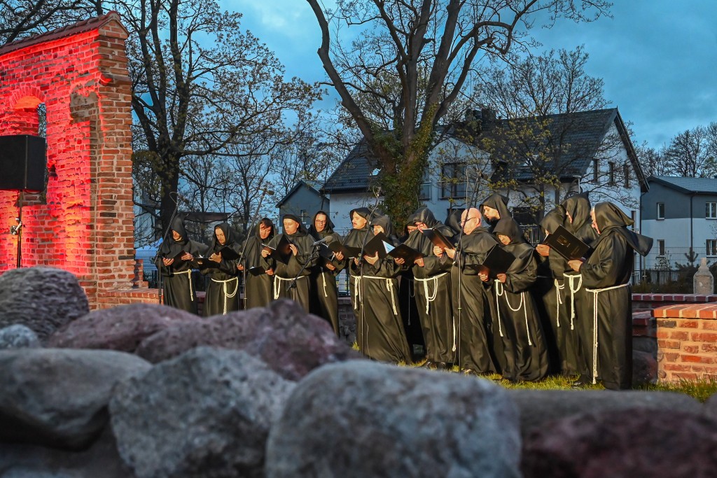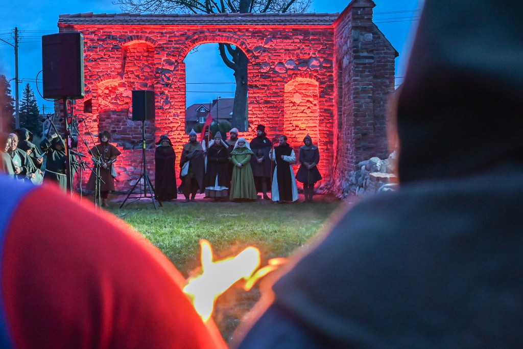 Sporą atrakcją dla rodzin okazała się gra miejska, której uczestnicy musieli wypełnić zadania ukryte w namiotach oraz szczegółowo zbadać pobliskie ruiny. Równocześnie, zaraz za ogrodzeniem obiektu od strony ul. Chopina, odbywały się rycerskie pokazy konne, pojedynki oraz prelekcje dotyczące dawnej mody, zwyczajów czy sokolnictwa. W międzyczasie w ruinach kościoła odprawiona została msza święta, w której uczestniczyły dziesiątki osób. Finałem wydarzenia był wieczorny przemarsz z pochodniami, zwieńczony klimatycznym koncertem pieśni cysterskich w wykonaniu męskiego chóru Zespołu Śpiewaczego Św. Cecylia.