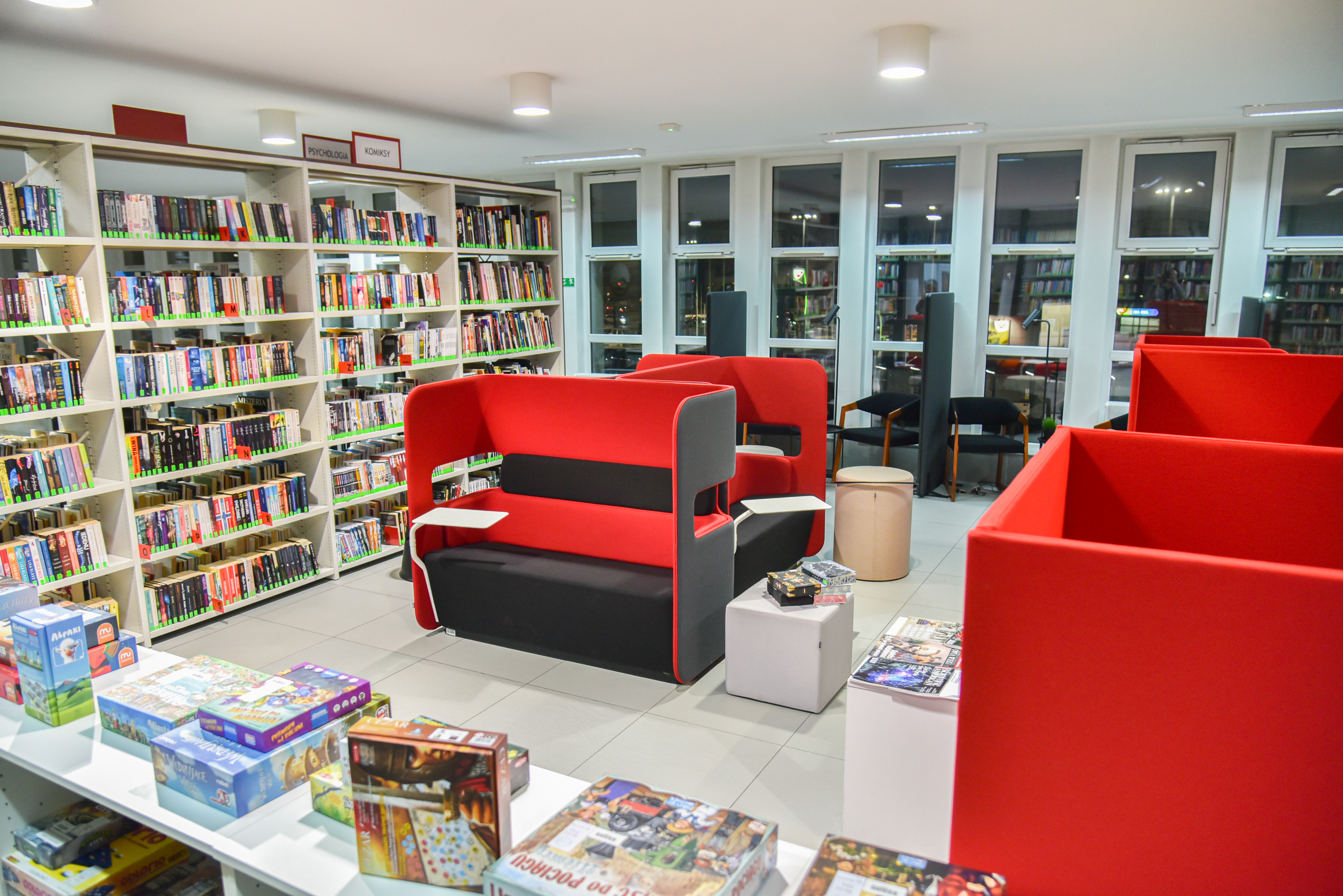 Zakres prac objął wygospodarowanie i zaaranżowanie na bibliotecznej antresoli „poczekalni z atrakcjami”.